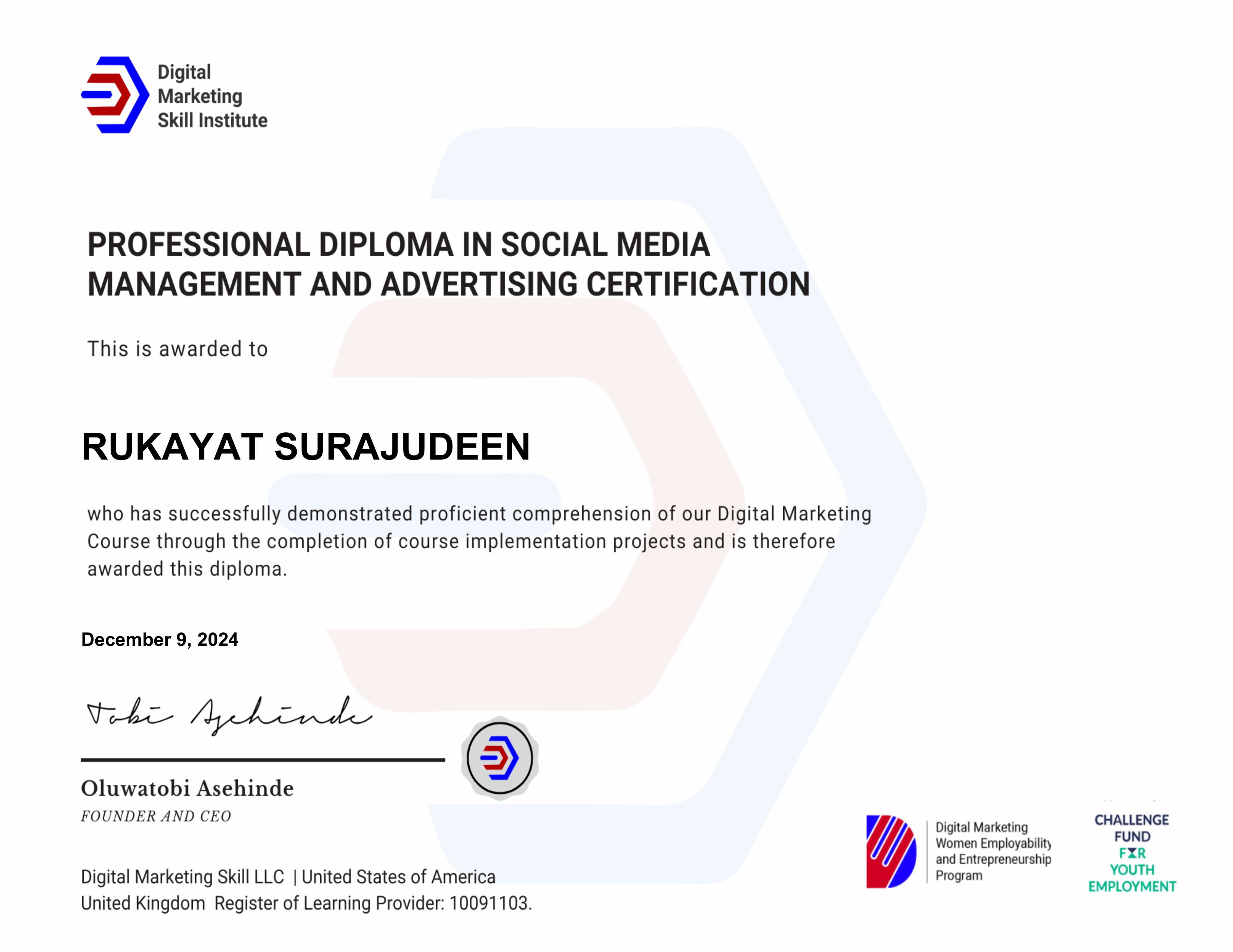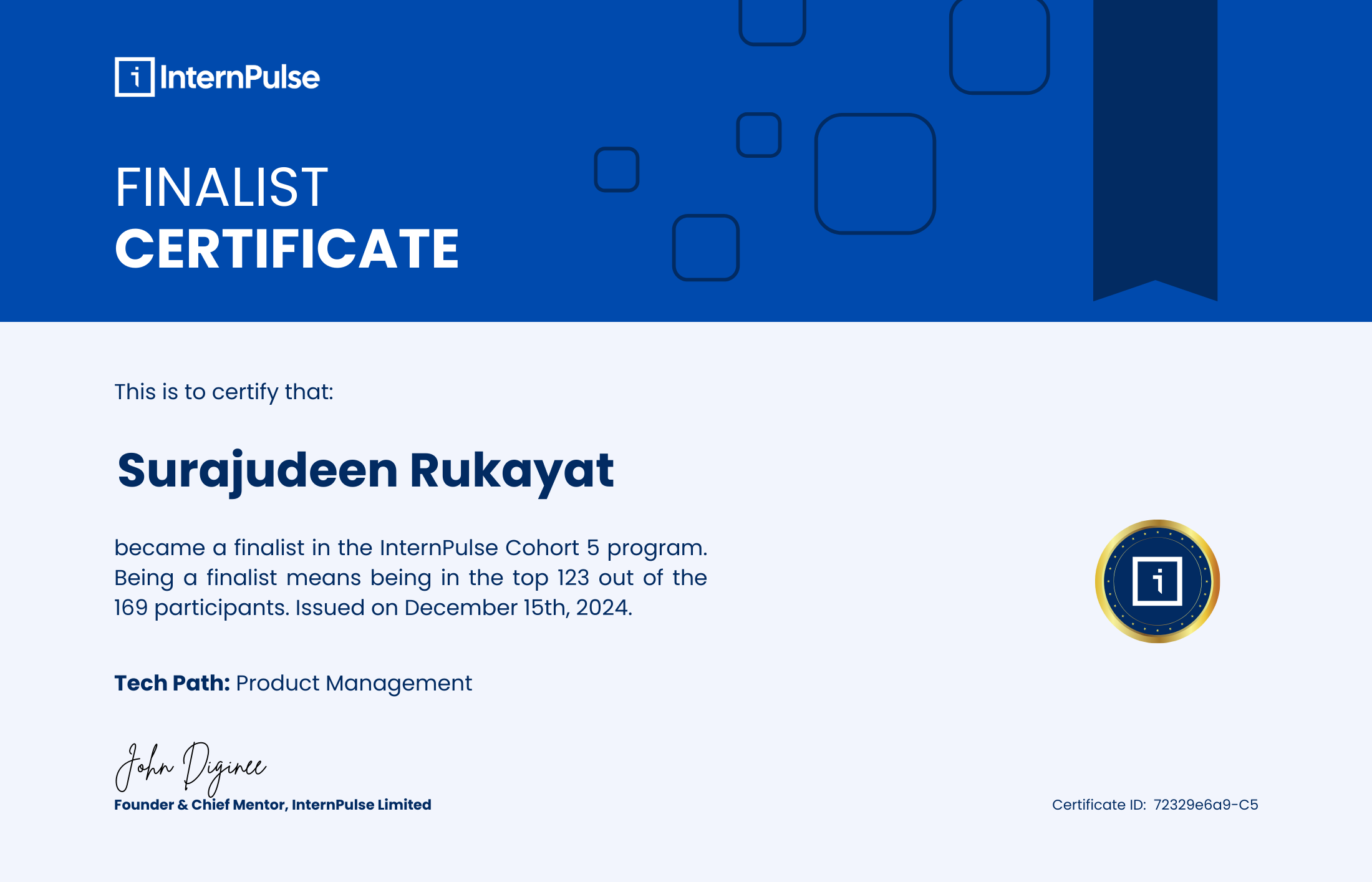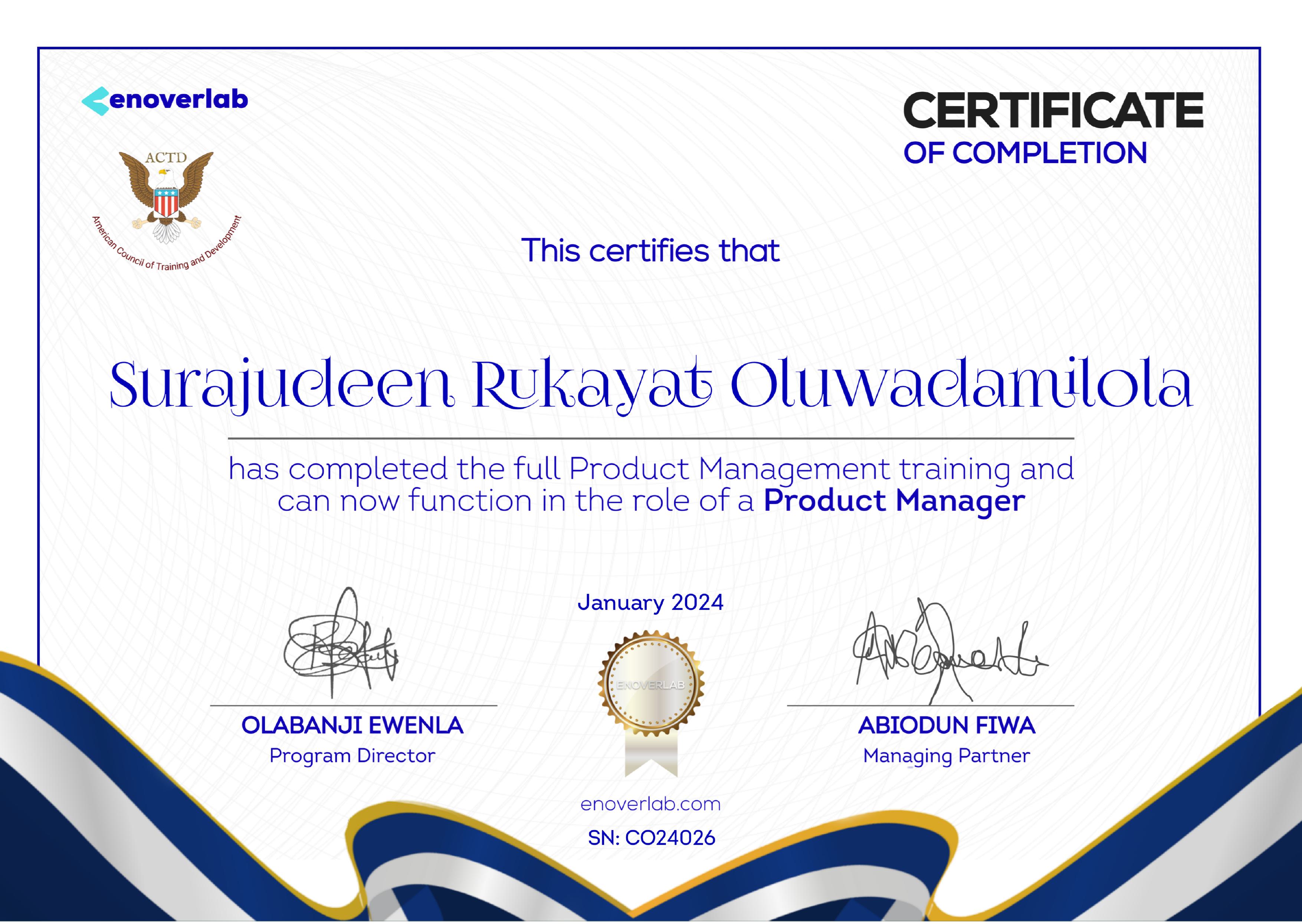 I’m Rukayat, a versatile Product Manager passionate about turning ideas into impactful solutions. With experience in customer service, marketing, and administration, I bring a collaborative and user-focused approach to product management. I excel in overseeing projects, managing product lifecycles, and driving success through strategic thinking, market research, and teamwork with designers, developers, and stakeholders.